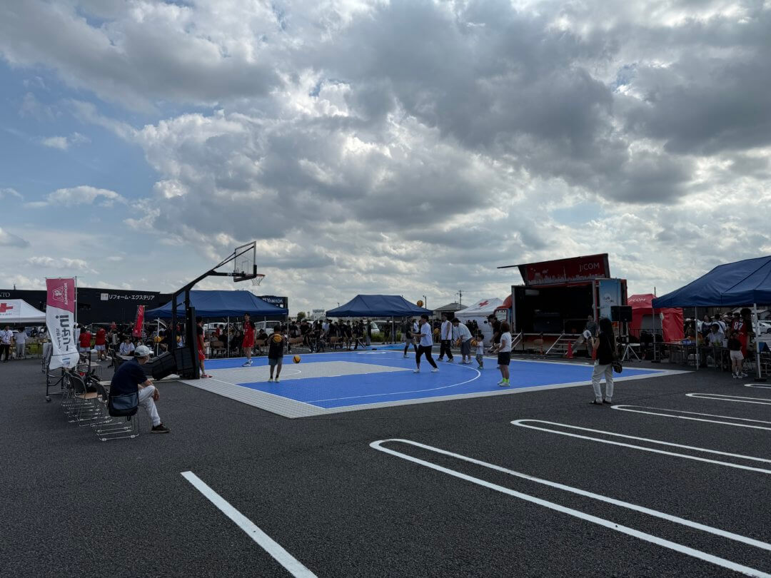 3×3専用コートが設置され、DJ・MCによる演出、物販ブース、ワークショップ、キッチンカーなどが並び、まるでプロ大会のような臨場感に包まれました。