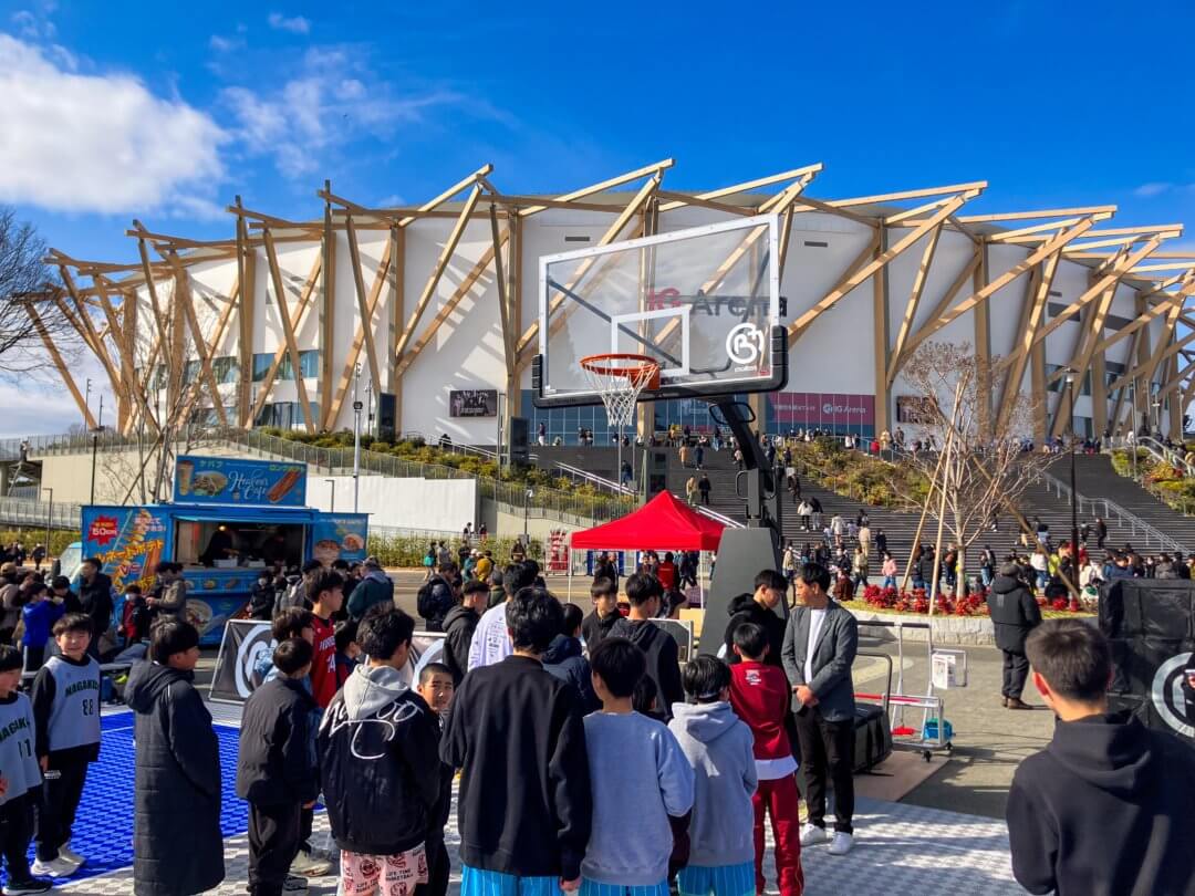 名古屋ダイヤモンドドルフィンズのホームゲーム開催日に合わせ、IGアリーナ屋外エリアでバスケットボールクリニックと大会を実施しました。