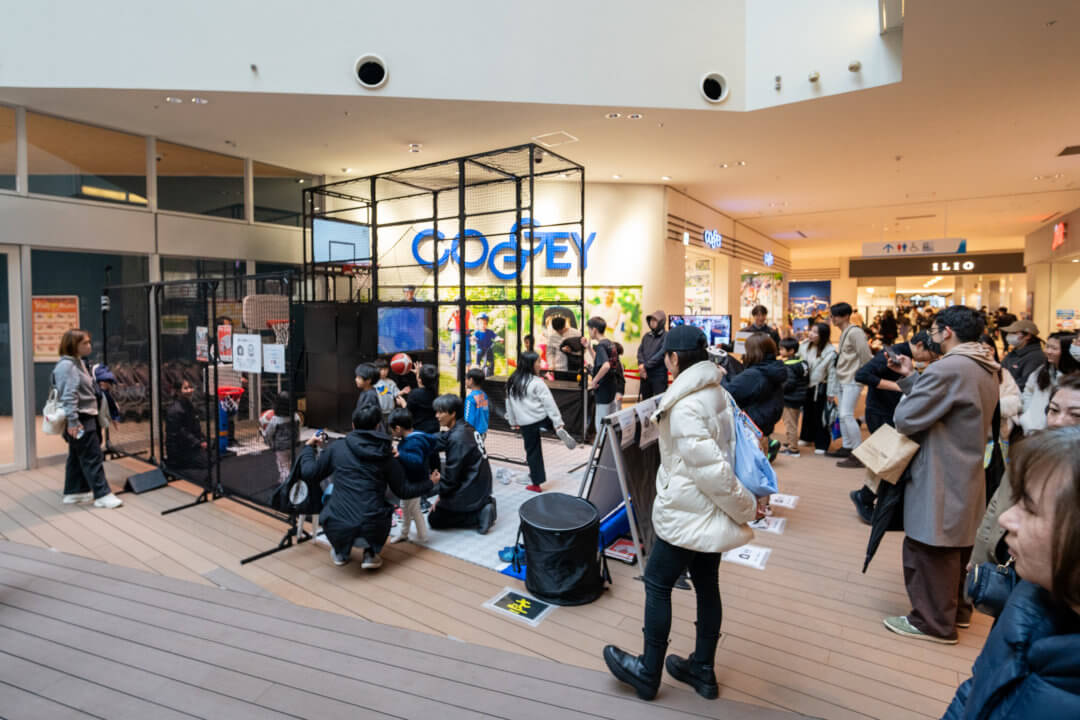 イベント中は、のべ980回プレイしていただき、老若男女がシュートに歓声を上げるシーンが各所で見られました。特に併設されたキッズスペースでは、小さな子どもたちがボールを手に取り初めてのシュートに挑戦。周囲の家族や友人が声援を送り合い、時には親自身もリングに向かう姿が印象的でした。年齢や経験の差を超えて、誰もが互いの挑戦を応援し、笑顔あふれる時間が生まれていたことが、会場全体の一体感につながりました。